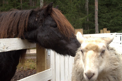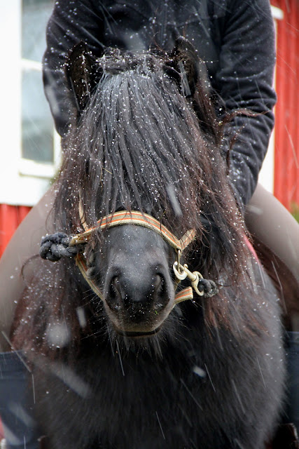 Saimme eilen tietää, että Martta on palannut takaisin. Nainen, jonka luokse Martta oli mennyt, oli päättänyt, että haluaa kaikki hevoset pois tallistansa ja niin ollen palauttanut Martankin takaisin. Tänään meitä odottelikin tarhassa sitten kaksi suloista mustaa ponia. Haettiin ponit sisälle ja harjattiin ne oikein kunnolla. Martta ei ollut tainnut saada huomiota vähään aikaan kun se tuntui olevan niin seurallisella tuulella. Ponit olivat muuten saaneet uudet karsinat ja nyt ne siis majailevat erillisessä huoneessa ilman kanojen ja lampaiden häirintää.. Lisäksi yhdestä pikkuisesta huoneesta oli tehty lämmitetty satulahuone, joten nyt satula ja suitset pystytään säilyttämään lämpimässä.