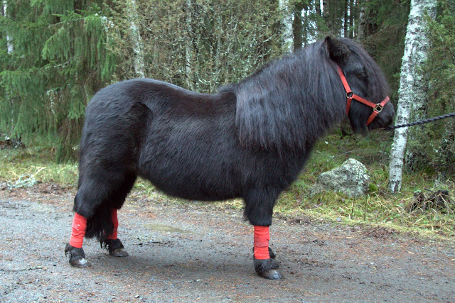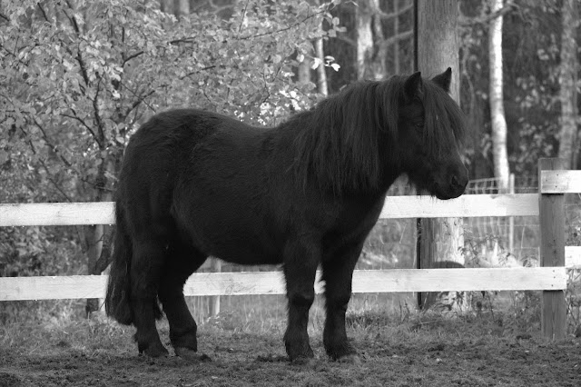 Tuo samainen tuttava, kenelle Martta nyt sitten menee oli jokunen aika sitten voivotellut, kuinka hänen tallillansa majailee tällä hetkellä huonoista oloista pelastettu n. 15-vuotias shetlanninponi-herra, jolla ei kuitenkaan ole siellä mitään käyttöä ja se joutusi pian teuraaksi, ellei kukaan sitä huolisi. Eilen iltapäivällä sitten istuessani Martan omistajan parturissa hiukset värjättävinä, kertoi hän minulle tuosta ponista. Kun kuulin sen nimen, olin heti melko varma, että tuo olisi se poni, joka aikoinaan oli Luvian ratsastuskoululla opetusponina ja siihen aikaan se oli myös lempparini. Hän pirauttikin sitten samantien tuttavalleen varmistaakseen, että poni olisi vielä hengissä ja sopikin samantien, että Martta vietäisiin perjantaina ja samalla tuo vanhempi herra tuotaisiin. Innolla nyt sitten odotamme millainen poni meitä lauantaina odottaa, kun menemme sitä katsomaan! Ilmeisesti se on kuitenkin lihonut tuolla nykyisessä paikassaan. Huono kunto sillä varmasti on, sillä sitä ei ole liikutettu puoleen vuoteen, mutta eiköhän sekin asia saada korjatuksi! :-)