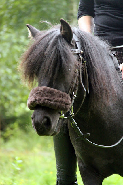Eilen kävimme taas Marttaa katsomassa. Tarkoitus oli mennä ilman satulaa jokin pieni lenkki, mutta niinhän siinä kävi että pienestä lenkistä tuli vähän pidempi ja raskaampi kuin aluksi olimme suunnitelleet. Ravailtiin tänään enemmän, mitä aiemmin ja siitä Martta sitten vähän villintyikin ja teki välillä jotain ihme pomppuja. Juuliakin sitten sieltä selästä sinkoili muutamaan otteeseen... Tajuttiin kuitenkin sitten pian, ettei kannata yrittää ravata liian pitkää matkaa kerralla, vaan lyhyitä pätkiä, jolloin varmasti ratsastaja ehtii itse pyytää ponin raviin ja takaisin käyntiin ennen kuin jotain traagista tapahtuu. :D Ratsastuksen jälkeen poni oli aika väsynyt ja se pääsikin kunnon pesulle, sillä sillä on nyt ollut jonkin aikaa reilusti hilsettä ja se piti pestä, jos vaikka hilse lähtisi niin pois. Pesusta Martta ei oikein pitänyt, mutta siihenkin sen sai lahjottua omenoilla. Lopuksi vielä harjattiin sen harja oikein hienoksi!